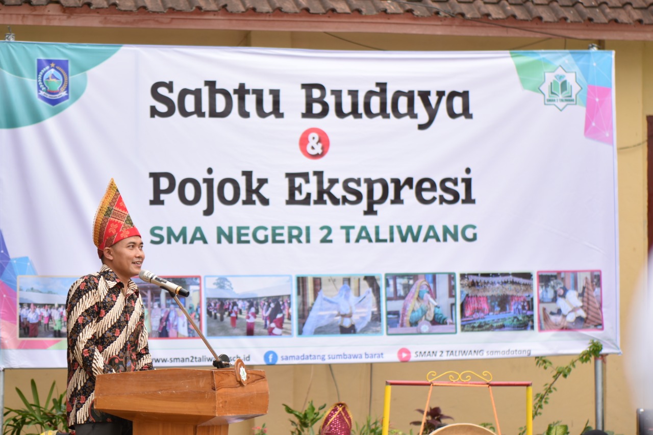 Sebelum meresmikan launching Sabtu Budaya Bapak Kasi Peserta Didik Dikbud NTB dalam sambutan beliau menyampaikan rasa bersyukur atas sambutan yang meriah yang di sugukan oleh SMAN 2 Taliwang dengan berbagai budaya, seni dan music tradisional serta antusias anak-anak hebat generasi gemilang, beliau menyampaikan agar selalu belajar dalam mewujudkan merdeka belajar di situasi covide ini, jangan sampai kecerian, canda, dan cerita dimasa-masa sma ini kalian tidak rasakan tumbuhkan rasa cinta dan kasih sayang. Launching Sabtu Budaya resmi di buka dengan betandanya pemukulan gong oleh Bapak Agus Siswoaji Utomo, S.Pd, M,Pd.