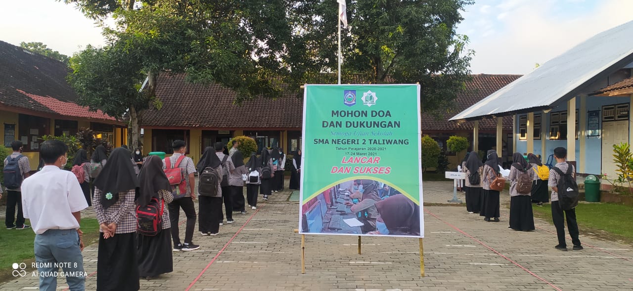 Rabu 17 Maret 2021, pelaksanaan evaluasi pembelajaran tengah semester genap dan ujian sekolah di SMA Negeri 2 Taliwang Tahun Pelajaran 2020/2021 hari pertama berjalan dengan baik. dengan penerapan sistim sip dan menerapkan  Protocol Kesehatan  nyaitu dengan menerapkan 5 M, (memakai masker, mencuci tangan, menjaga jarak, menjauhi kerumunan, mengurangi mobilitas untuk menghindari dan mengurangi penyebaran covid 19.